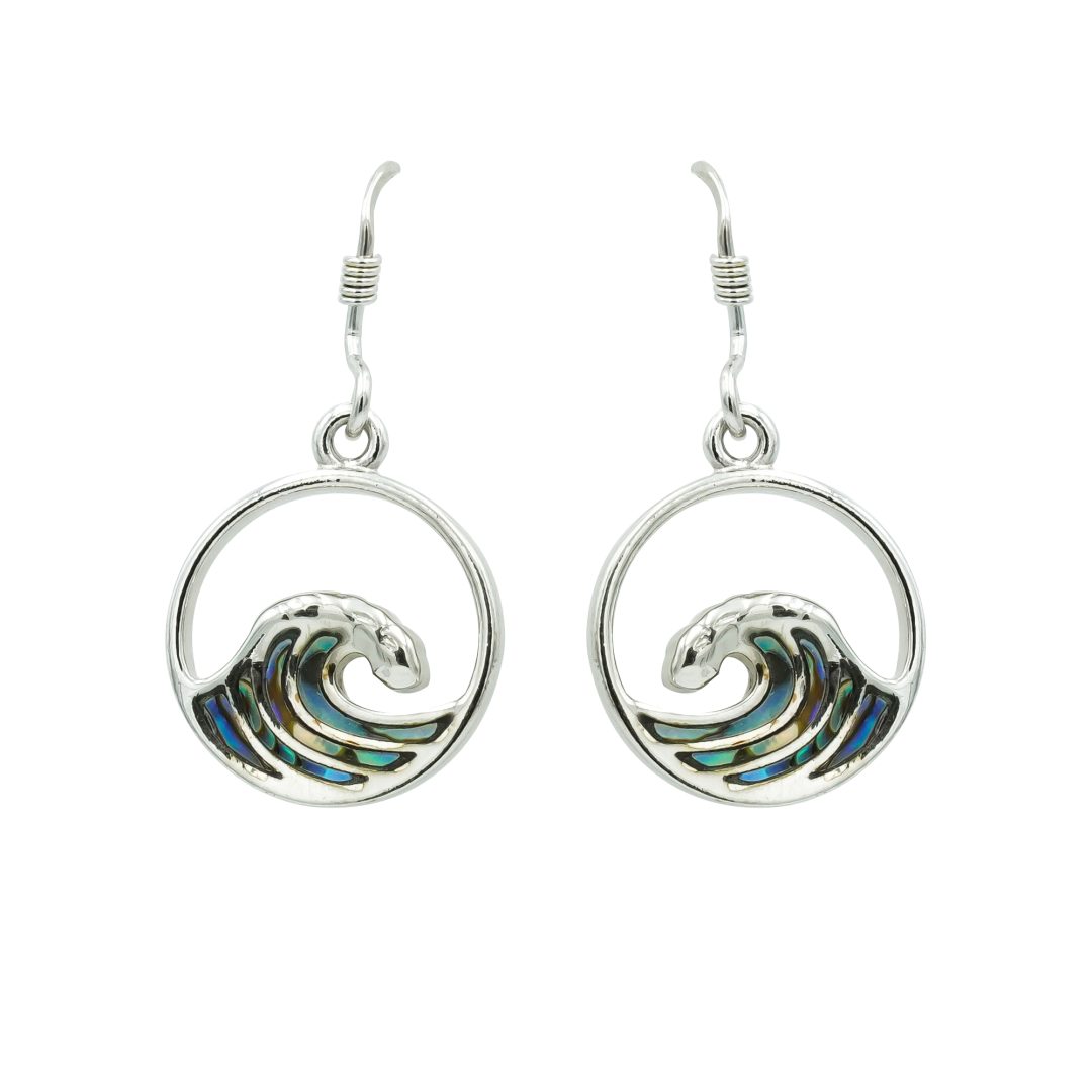 The perfect gift and accessory for any avid water lover! The classic “Wave in a Circle’ Earrings created in Abalone Shell & .925 Sterling Silver . Earrings are 3/4 inch in length. Rhodium overlay to prevent tarnishing.