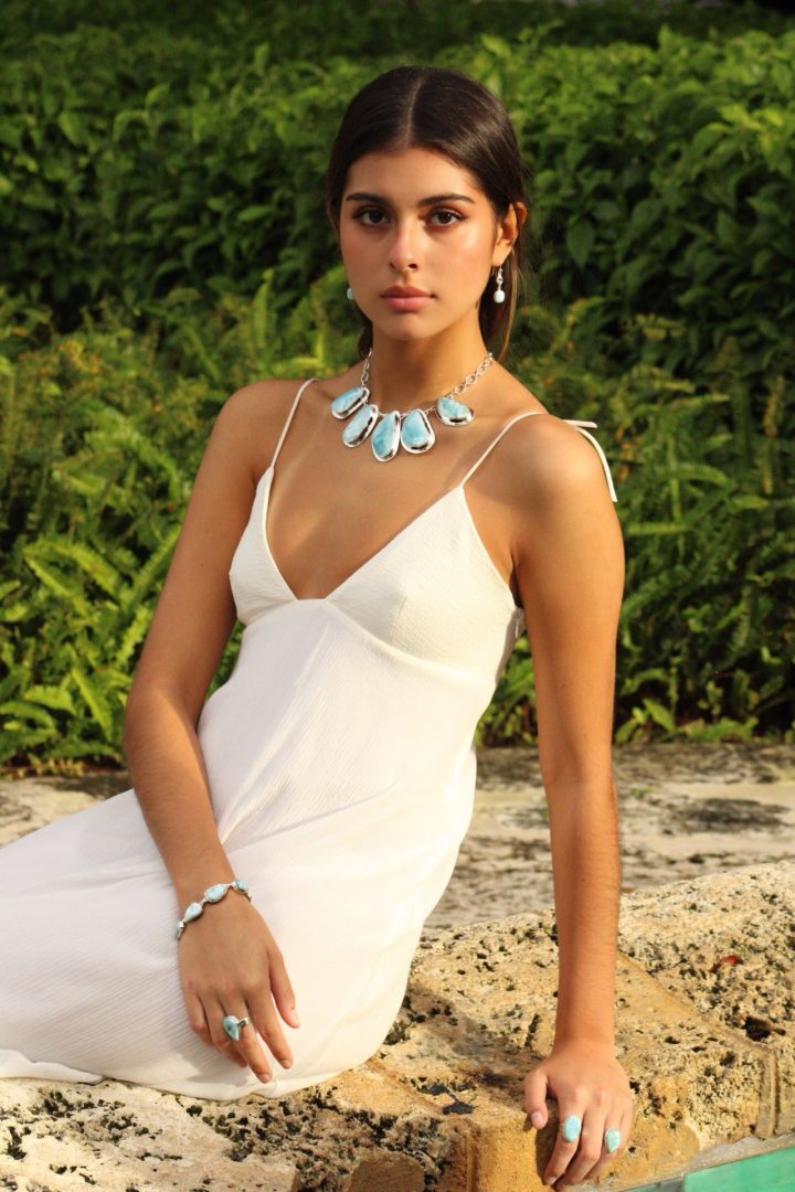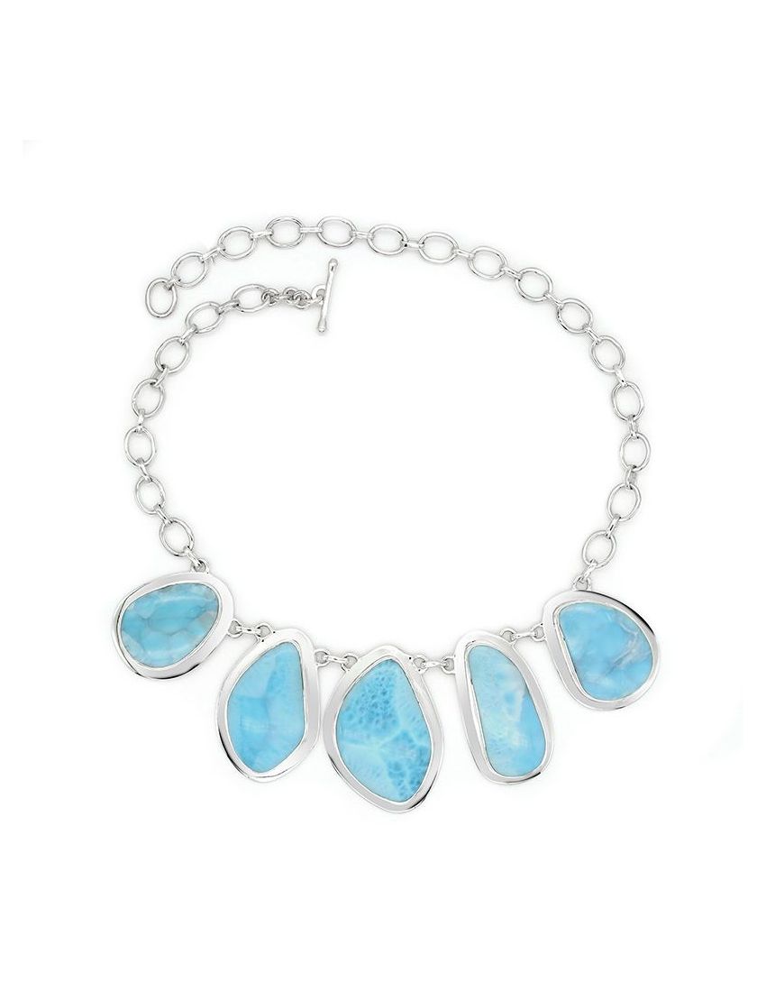 This Larimar is enveloped in sterling silver securing each stone. If you love Larimar, this necklace is a must and truly elegant.