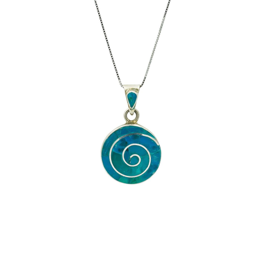 Handmade Artisan pendant with Turquoise inlay set in fine .950 sterling silver. Pendant is 1/2 inch.