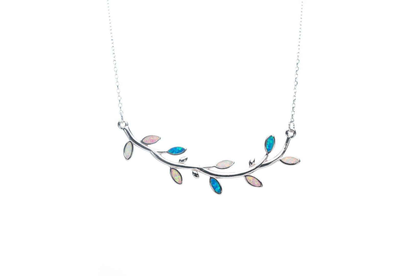 Opal Pendant is 2 inches in length. Necklace has a a 2 inch extender to allow flexibility is style (18 inches – 20 inches). Rhodium overlay to prevent tarnishing.